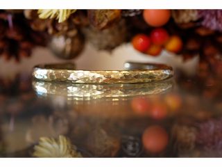◆ベースのバングルにテクスチャーハンマーで槌目模様を付けて作ります