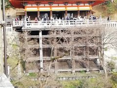 清水寺の本堂を参拝後、音羽の滝には直接下らずに、釈迦堂と阿弥陀堂を参拝して奥の院に参りました。音羽の滝の真上に建ち、現在の建物は、本堂と同時期の1633年の再建です。本堂と同様の懸造りで舞台があります。本堂清水の舞台のミニ版とも言えます。舞台から改装中の本堂の全容を眺めることができました。逆に本堂の清水の舞台から美しい朱塗りの奥の院を眺めることができます。