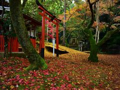 京都の紅葉はきれいなところが多いのですが、今熊野観音寺はかくれた撮影スポットでした。苔の生えた木と緑の苔と上に真っ赤なもみじが落ち葉になっていた素敵な場所でした