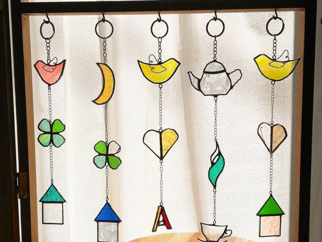 まずは小さいサンキャッチャーから体験してみてください。作り方がわかったら次の機会に少しずつ大きな作品に挑戦してみてください。2回目からはランプやパネルや写真立てなども。