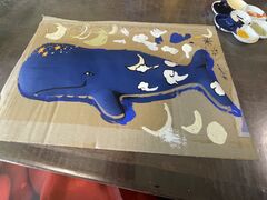 絵付け体験 クジラデザインの素焼きの陶器に絵付けをしていただけます。
