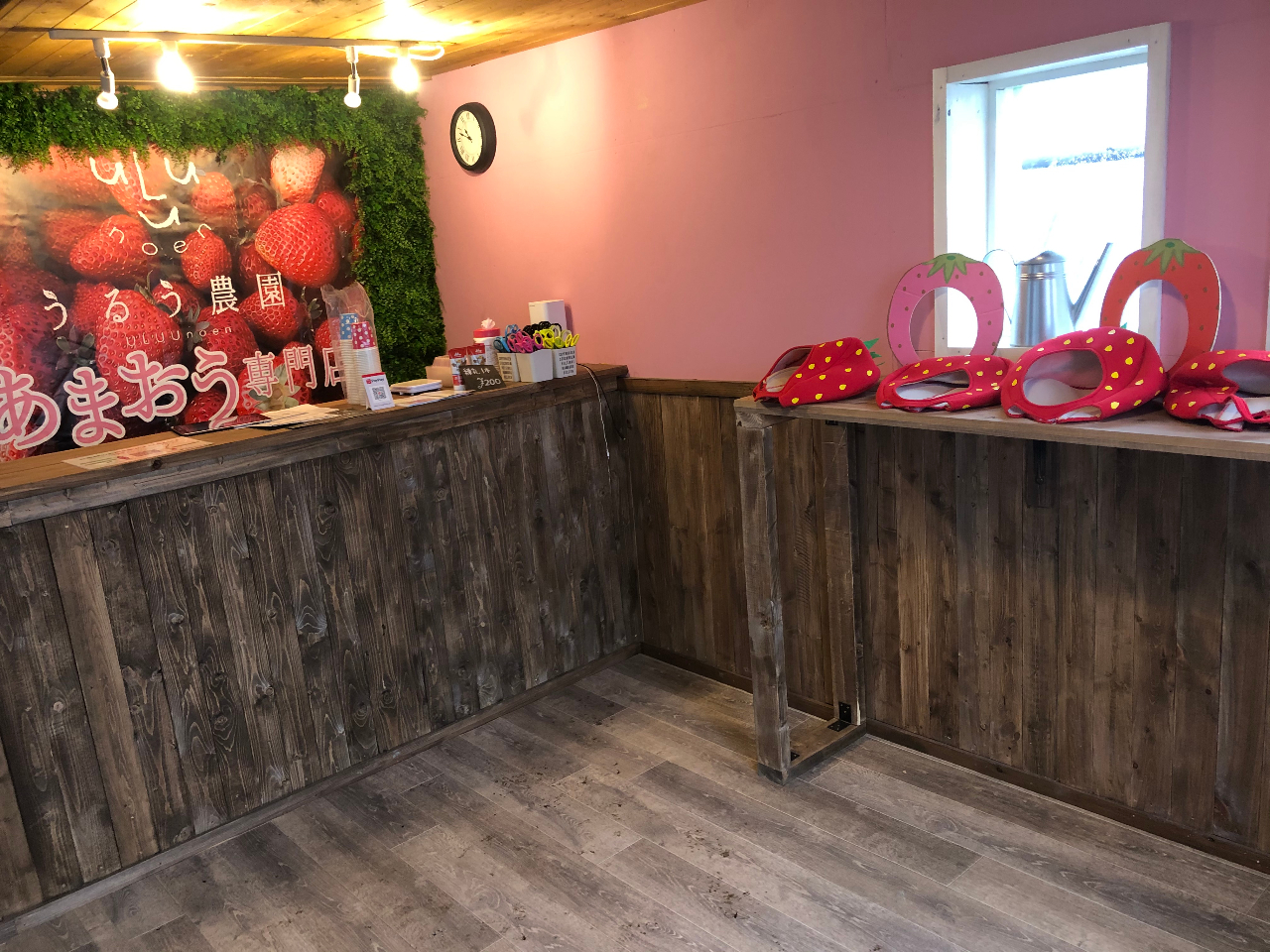 お土産には受付にて販売しておりますパック売りの苺をご利用くださいませ。