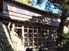 都久夫須麻神社側から宝厳寺観音堂方向を望む:土台が掛け造りになっています。