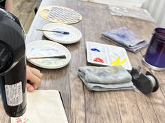 秩父旅行の思い出作りに予約していきました。着物レンタル屋さんの店頭(屋内)にテーブルと道具がセットされていました。ステンシルのような感じで、布製品に自分で選んだ型をつかって模様をつけていきます。子供から大人まで楽しめると思います。製作時間は30分程度。絵付けの範囲が広かったり、こだわって丁寧にしていたりすると時間もかかります。出来上がったものは当日持ち帰れますし、楽しめました。