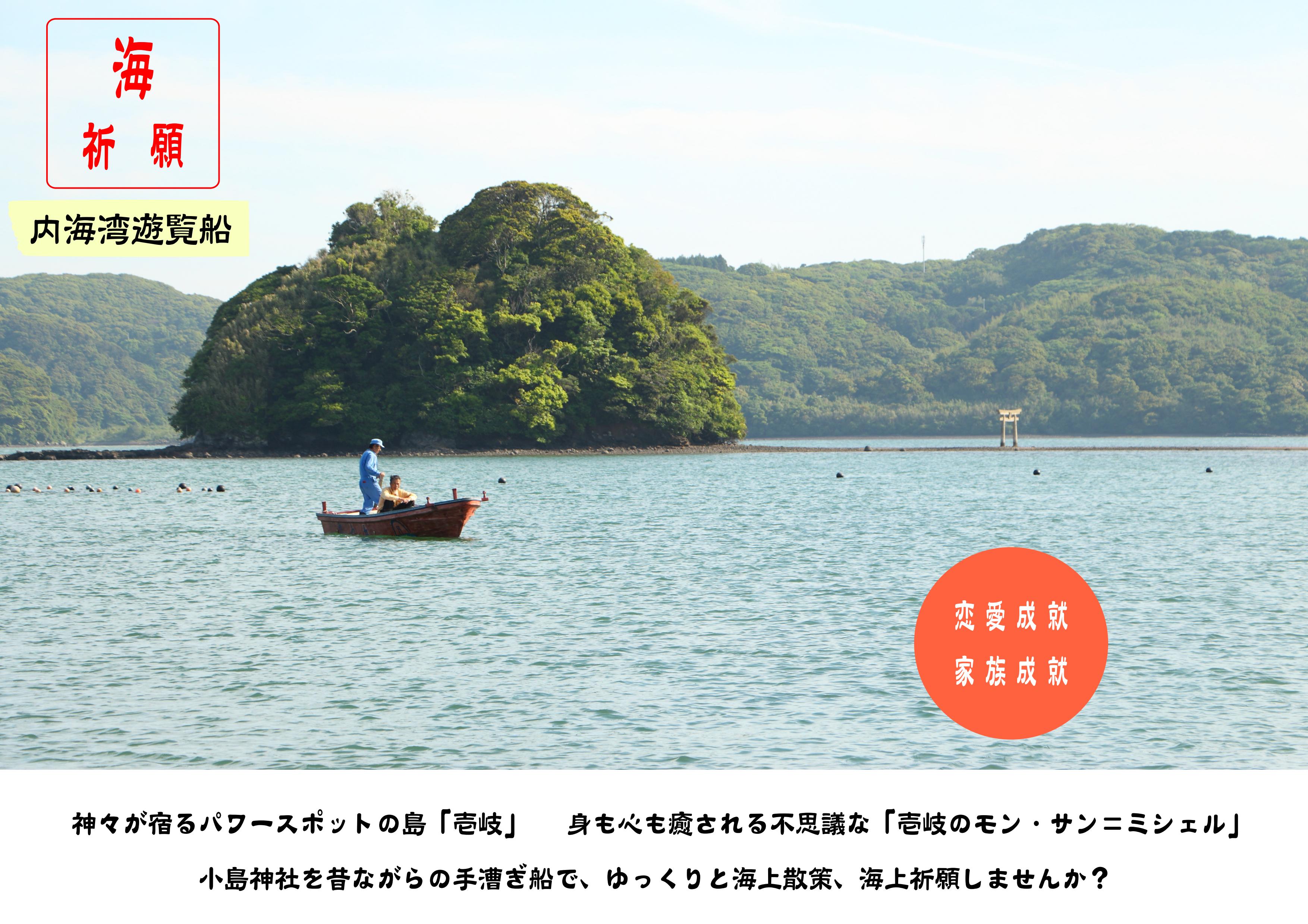 内海湾(うちめわん)遊覧船は、小島神社周辺を昔ながらの伝馬船で、ゆっくりと参拝できます。家族、仲間で神秘的な内海湾をお楽しみください♪