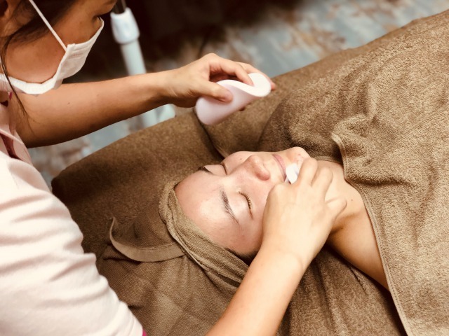 ボディエステ後にお顔の毛穴洗浄も行います。超音波で毛穴の汚れを取り除きます。