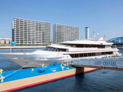 夜のクルーズターミナルにレディークリスタルが光に神々しく照らされて乗る前からテンション上がります!乗ってすぐ飲み物も振る舞われ、東京湾クルーズが始まります。2階なら飲み物を持って夜景が楽しめます!レインボーブリッジの真下を通ったり、オリンピック選手村が間近に見れてキラキラしていて最高でした!リピートします!