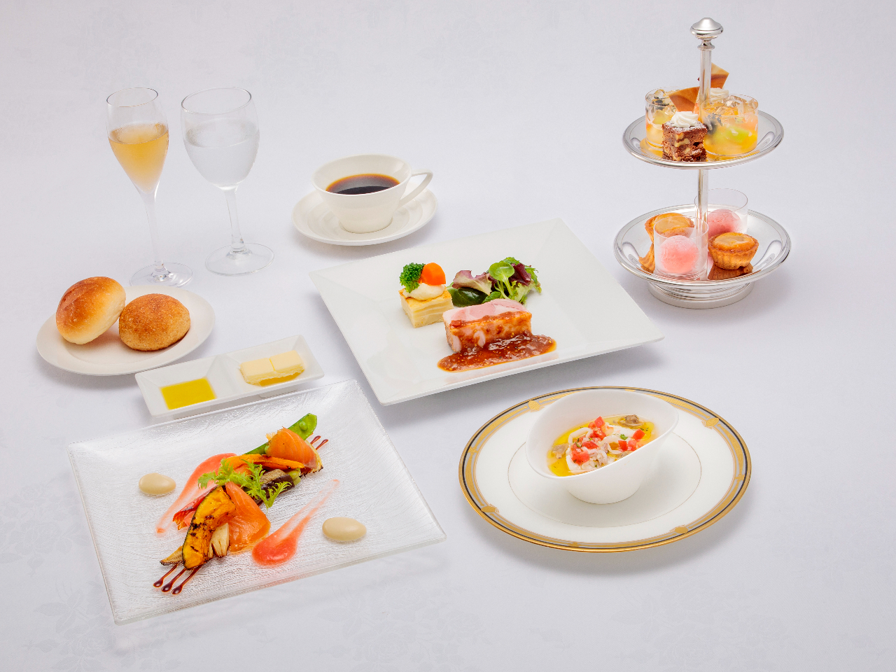 ・4種のデザートで優雅な昼のひとときを 氷菓子・特製タルト・プチケーキ・ミックスゼリー(4種の小菓子とお飲物で食後のお時間をお楽しみください)