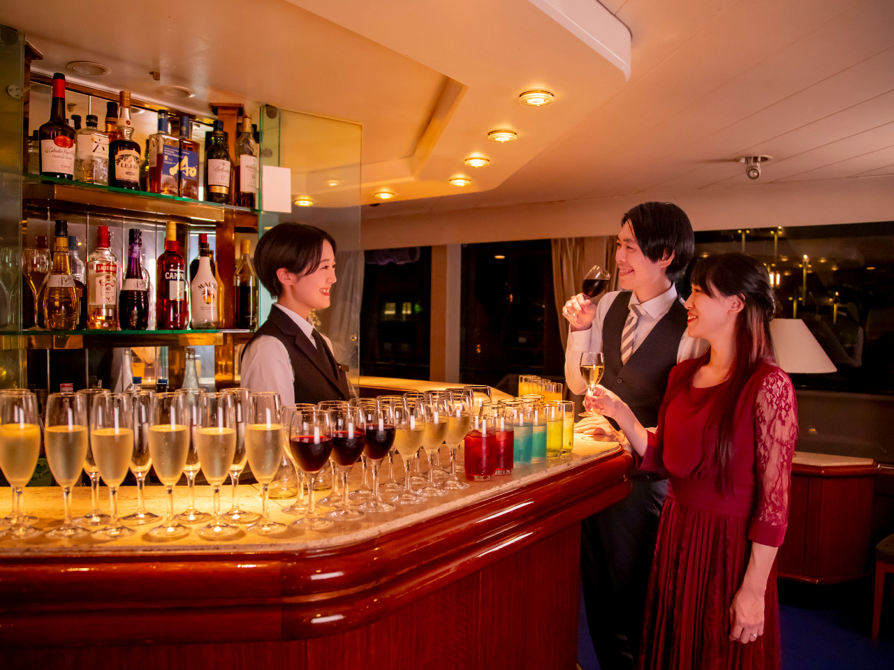 フリードリンク付きで煌びやかな東京港の夜景をお楽しみください。