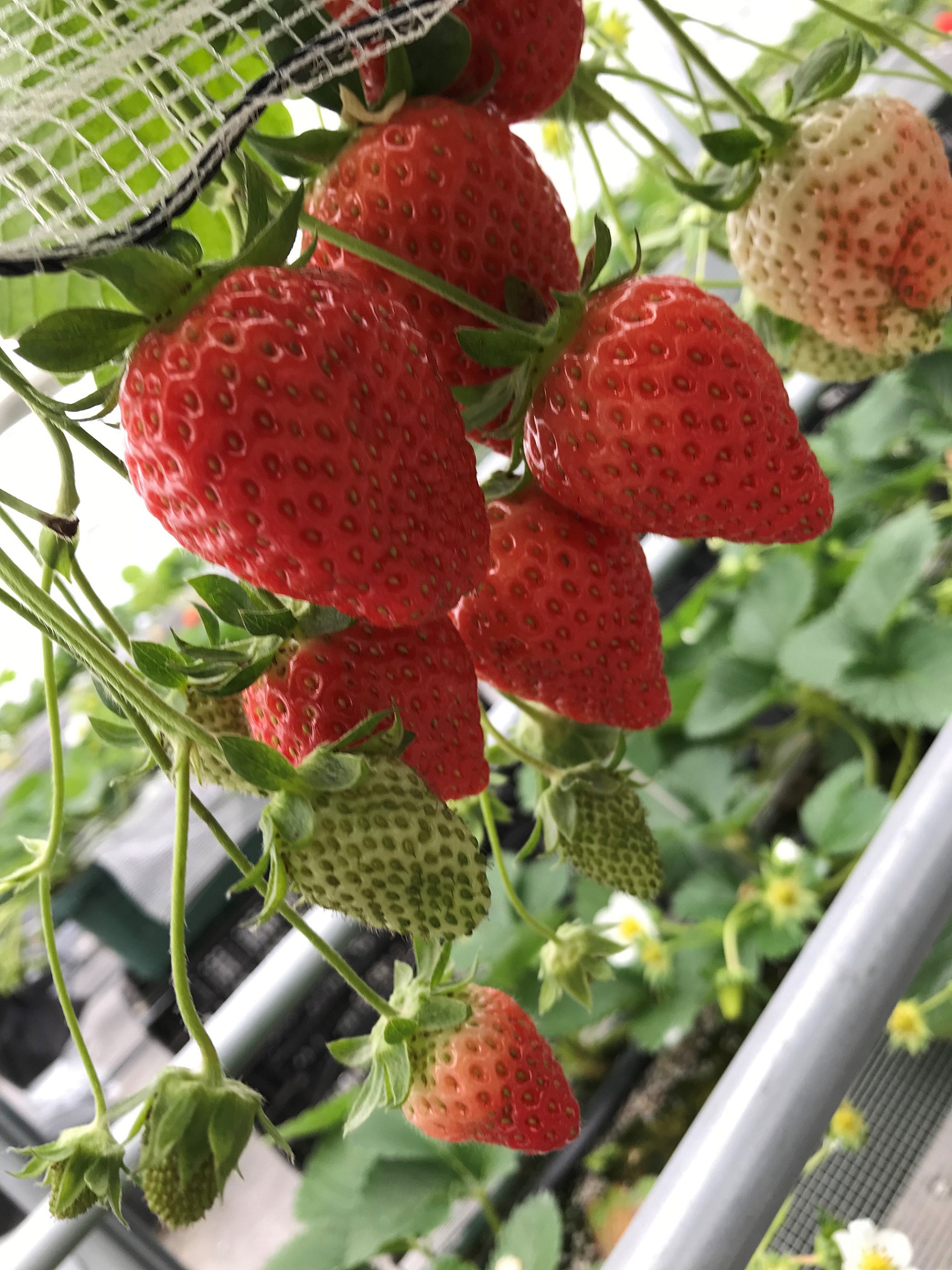 また、いま流行りの(?)高設栽培だったため地面などの汚れも気にすることなくリラックスしていちご狩りをすることができました。