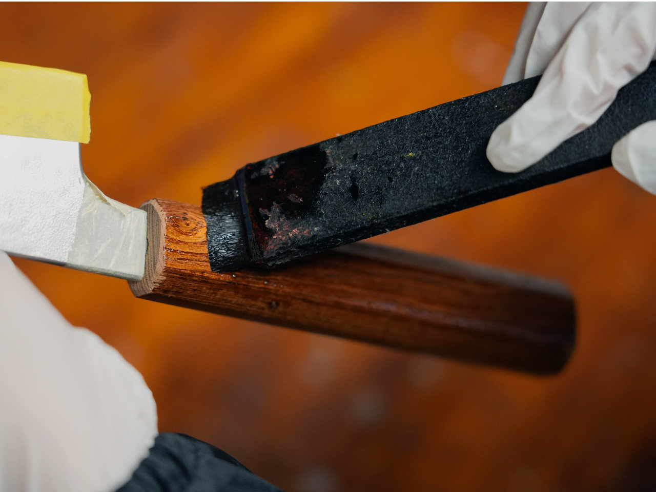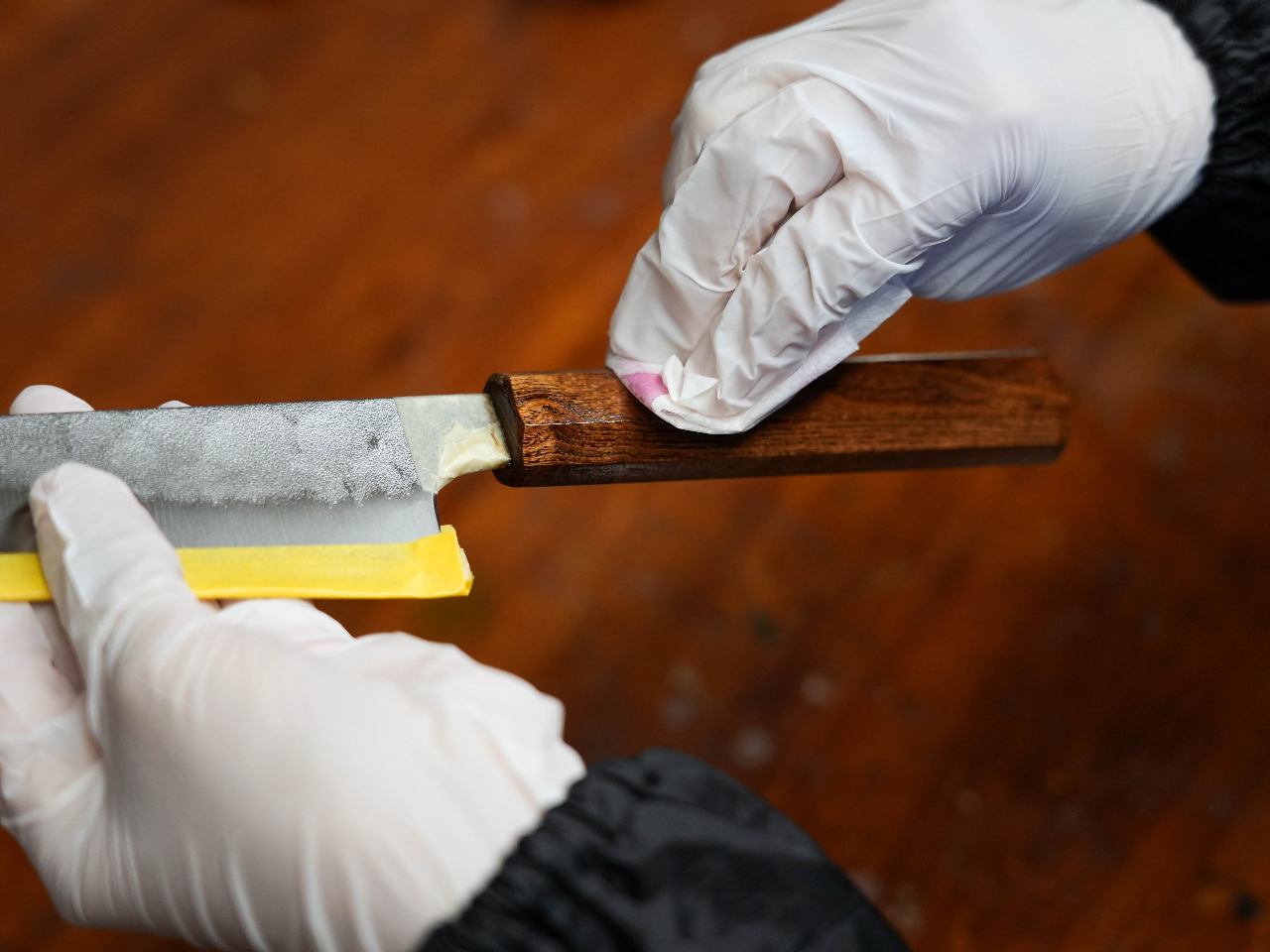 龍泉刃物にて包丁の仕上げ工程を体験し、柄と繪にて柄の木地を選び、拭き漆を体験していただきます。