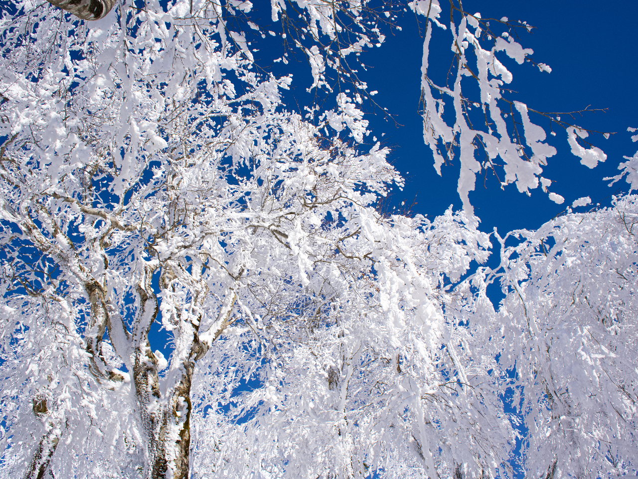★軽アイゼン・スノーシューを履いて、アイスガーデンと呼ばれる仙人沢氷瀑を見学し、樹氷の中を歩くツアーです。