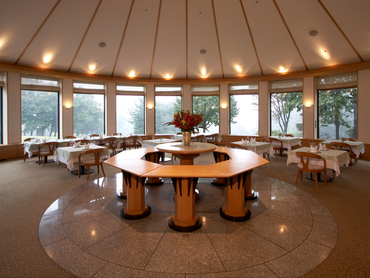 雄大な赤城山をバックに、森の景色に静かにとけこむ贅沢な空間のレストランです!