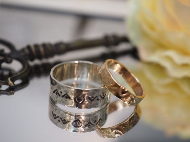 シルバーor14金ゴールドフィルor真ちゅうのリング作りを体験、プラチナ、18金にアップグレードして結婚指輪も