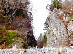 賽の河原と呼ばれる場所から下流側を見ると、巨大岩石を半分に割ったような場所がありました。