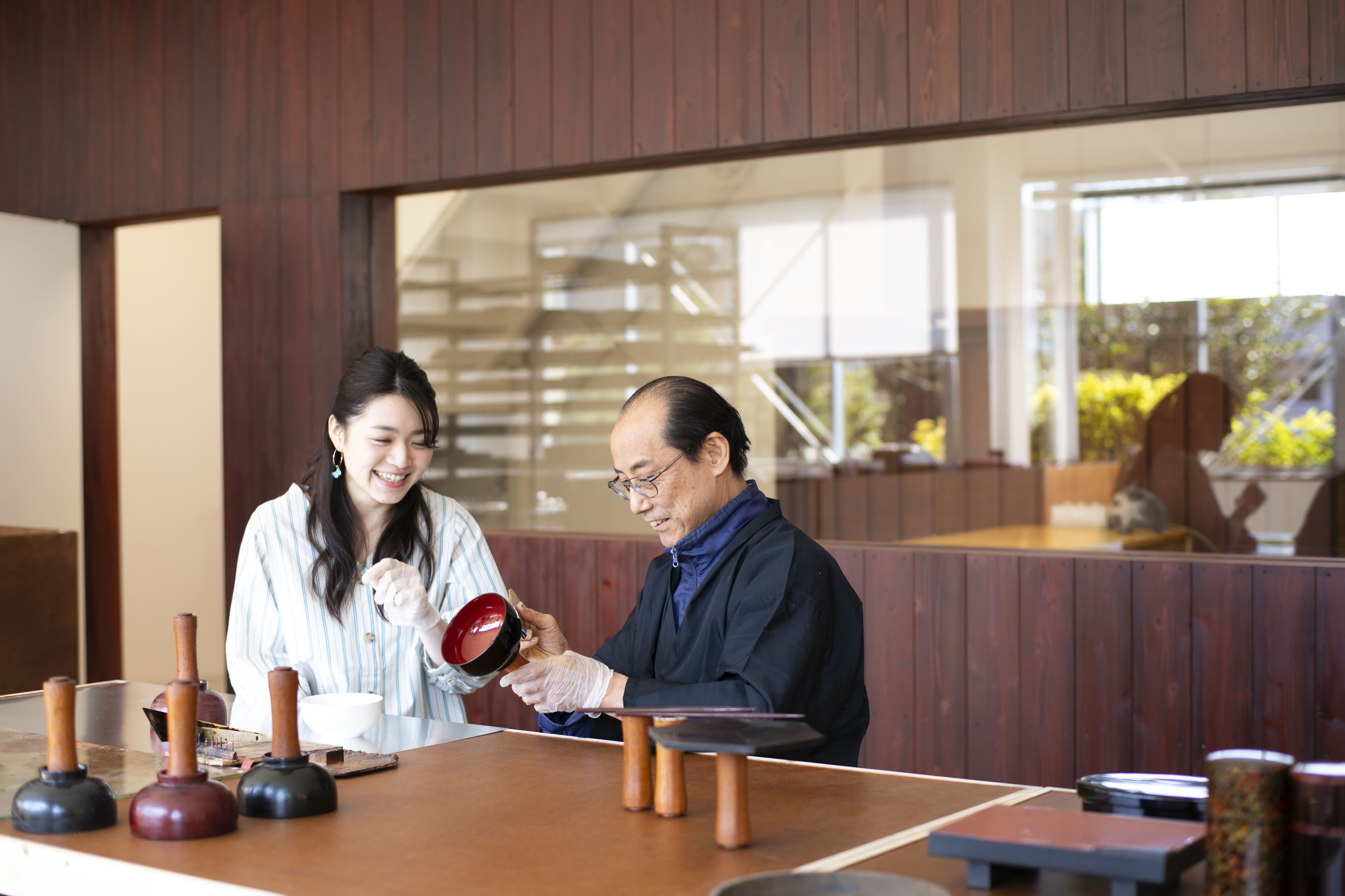 プロの職人からレクチャーを受けながら漆塗りを体験してみましょう。