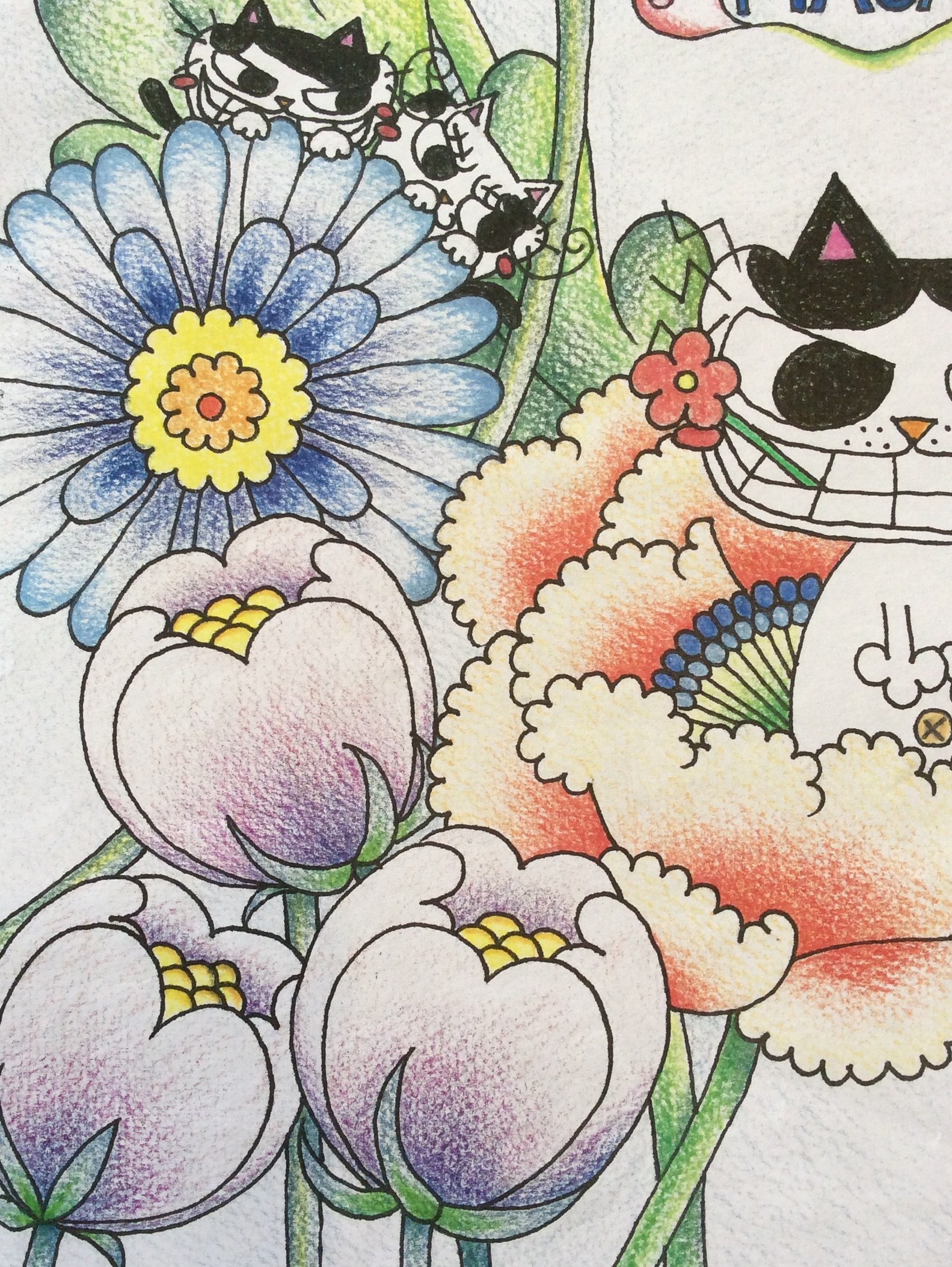 好きな絵を描いてもらい、何色もの色鉛筆で色を塗ります。