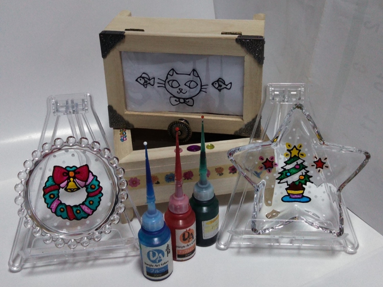 【女性やお子様にオススメ】【☆ディンプルアートカラー体験☆】ガラスに透明絵の具でアート体験☆