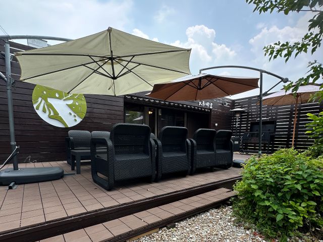 日差しが気になる女性の方は、室内にテーブルも椅子もございますので日焼けを気にせずお楽しみいただけます。