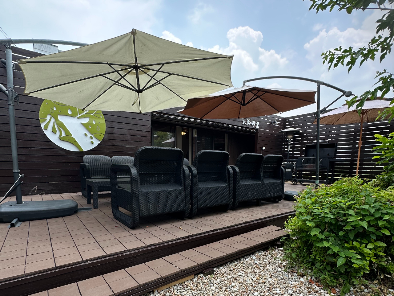 日差しが気になる女性の方は、室内にテーブルも椅子もございますので日焼けを気にせずお楽しみいただけます。