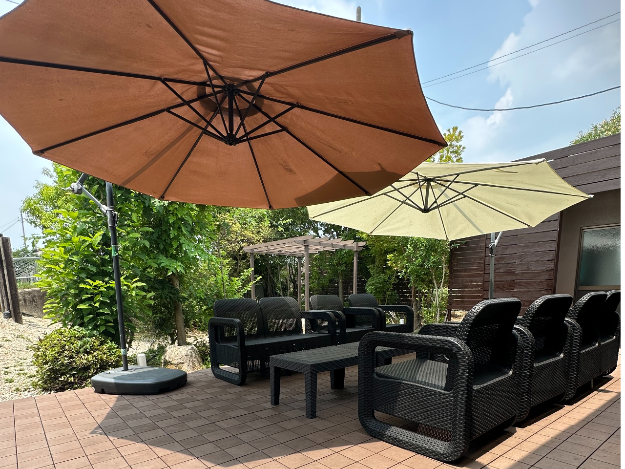 綺麗な庭を眺めながらゆったりとした時が流れます。色々なレンタル商品のご用意しております。お気軽にお声がけください。