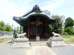 境内に入り左を見ると本堂?があり狛犬ならぬ狛獅子ですね。そう鞍馬寺と同じく本尊・毘沙門天である場合は狛獅子です。獅子は毘沙門天の使いなんですよね。