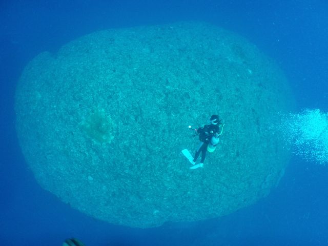 人の顔に見える人面岩は、ちょっと不気味!?魚群が集まるポイントです!