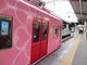 ピンクの電車でした。 車内は縁起のよさそうな内装でかわいらしかったです。