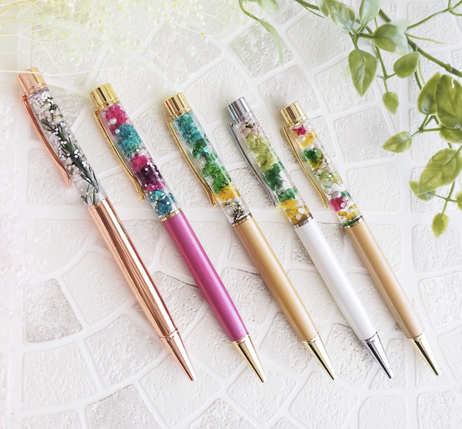 ・ハーバリウムを1本とボールペンを好きなデザインで2本作れます。