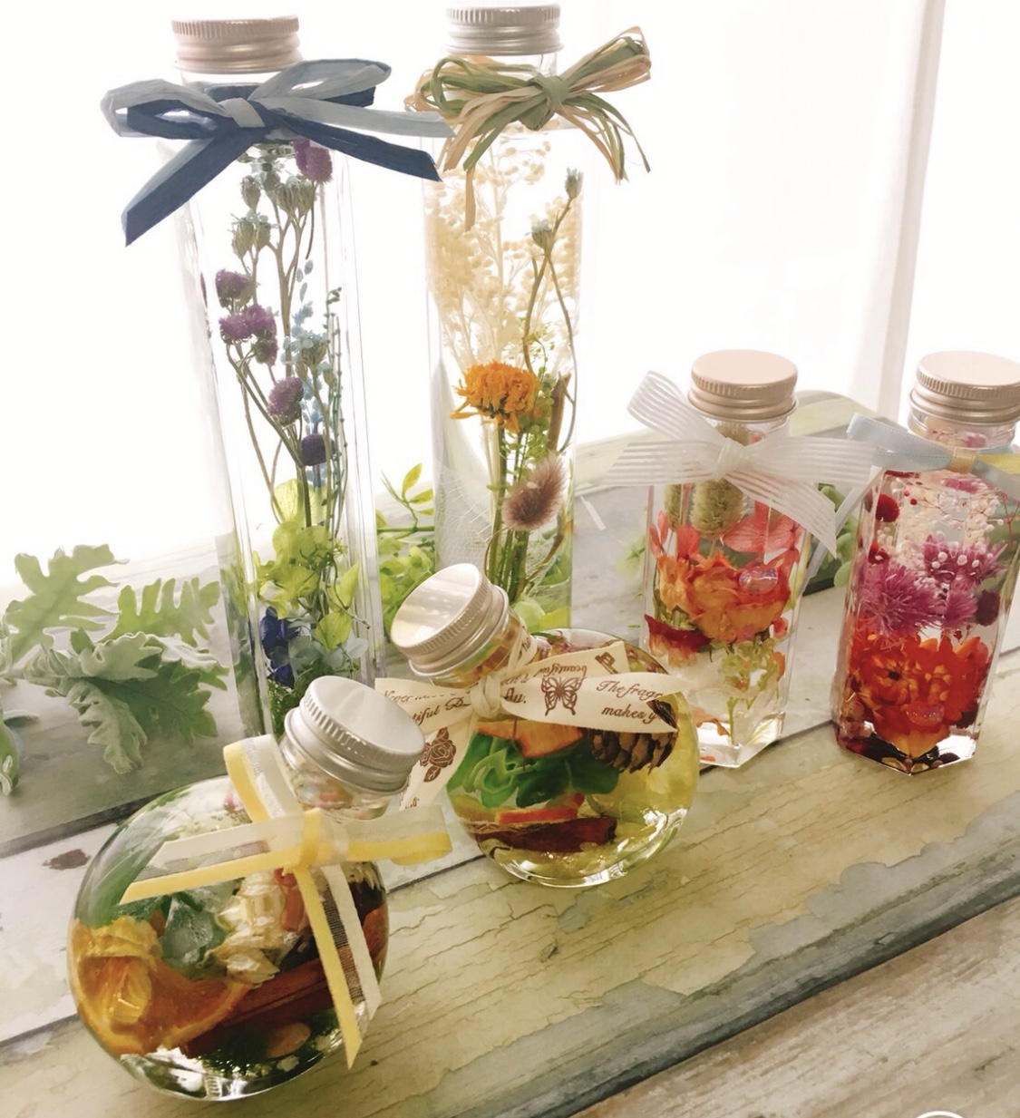 ・数類のボトルの中から選んでいただき、色んな花材や飾りで制作します。