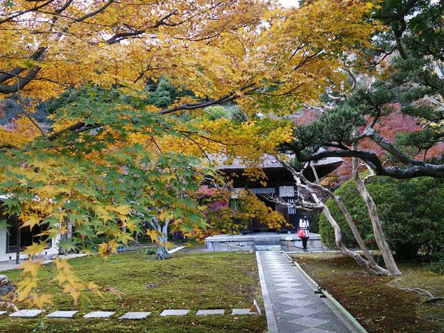 小方丈から見える紅葉の色付きは進んでいませんでしたが、観音堂の後ろ側に真っ赤な楓があり一番綺麗でした。