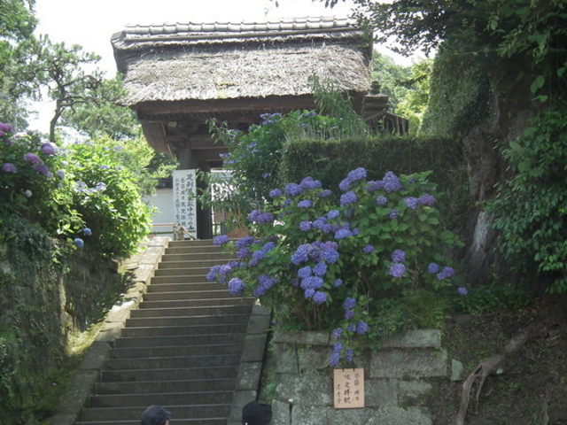 北鎌倉駅から建長寺のほうへと向かう途中、亀ヶ谷坂との分かれ道の角にあります。足利尊氏の子が尊氏の菩提を弔うために建てた寺で、庭園がきれいなことで知られています。ただ、普段は非公開になっていて、亀ヶ谷坂のほうの門から中をちょっと見ることができるだけです。春と秋の一時期だけ特別公開されます。