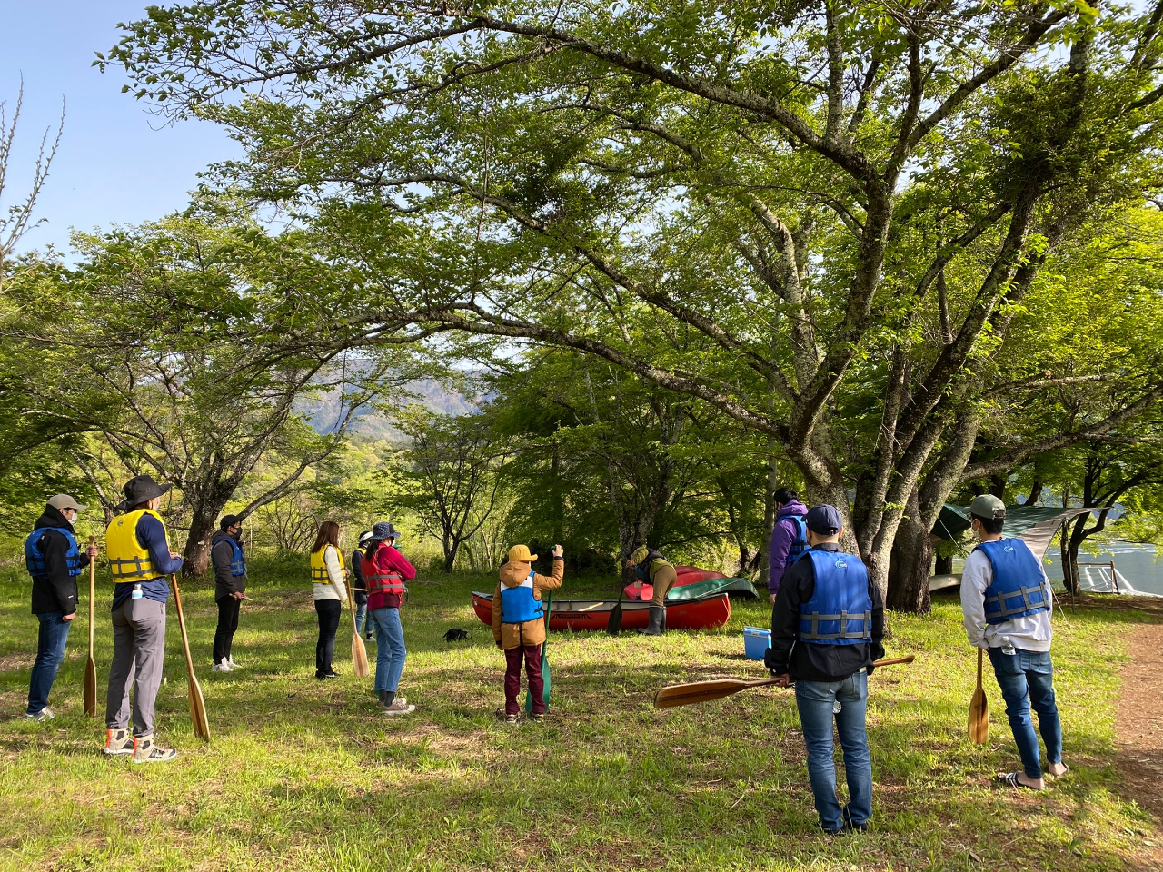 みんな協力し合ってカヌーを漕ぐ、信頼関係を育ちます。