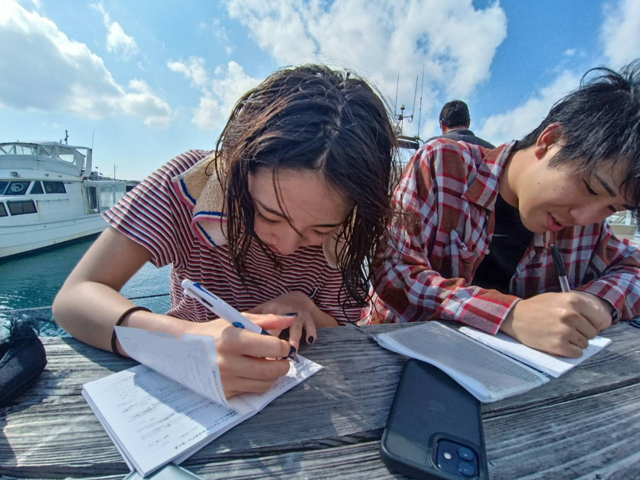 ご了承ください。船を固定する作業が終わりましたら海へドボン!