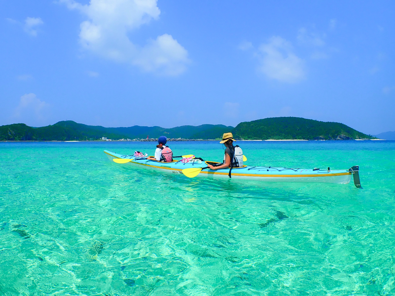 初心者でも簡単操作の二人乗り舵付きシーカヤックで慶良間ブルーをツーリング☆