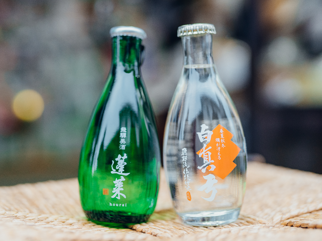 飛騨古川の二大酒造ブランドの「蓬莱」か「白真弓」のワンカップ付き。
