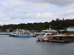 宮島口と宮島桟橋を結ぶフェリーはJRと松大汽船の2社が運航しています。どちらも料金は同じです。JRの方は宮島に行く際、大鳥居の方に迂回するコースをとるので、船上から大鳥居の写真を撮るのであれば、行きはJRを利用した方がよさそうです。私たちが乗った時には、大鳥居が修復工事中で覆いに覆われていたのと、宮島に渡る日に広島電鉄の1日乗車券を購入していたので、行きは松大汽船を選びました。広電の1日乗車券で松大汽船のフェリーにも乗れます。帰りはそのまま広島まで出て福山までJRに乗ることにしていたので、JRフェリーに乗りました。往復の割引も特にないので、行きと帰りで使い分けても損はありません。