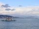 宮島へ向かうべくフェリーに乗るために桟橋に向かいました。天気が良かったので海と空の青と山の緑がとても綺麗に見えたので癒されました。
