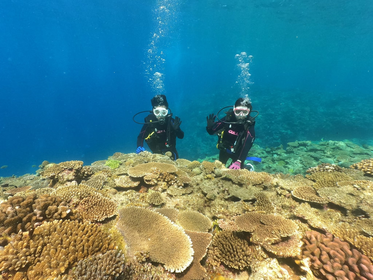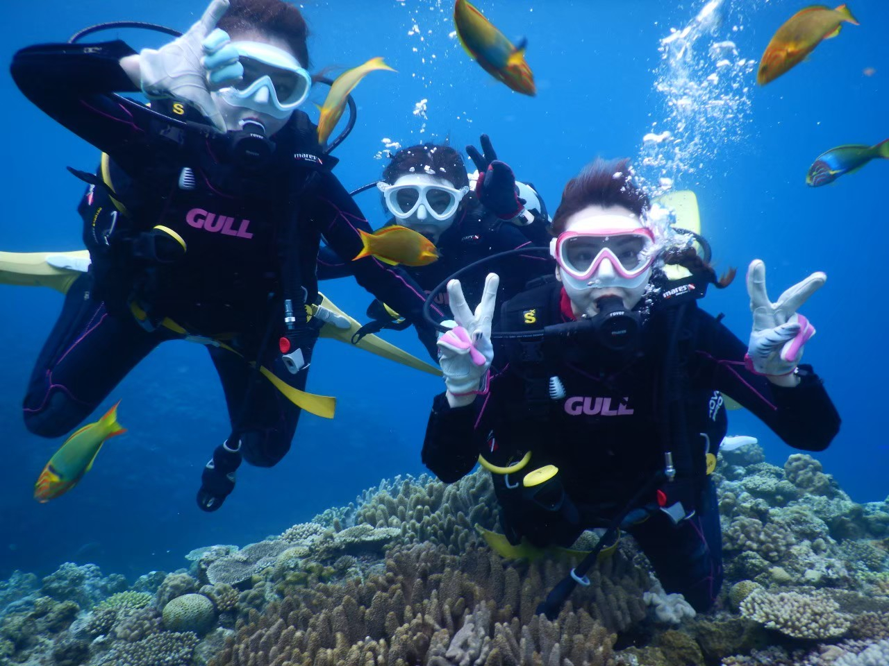 浅い水深で水になれたら深度5m程度 水中滞在時間約30分の水中ツアーに出かけます。
