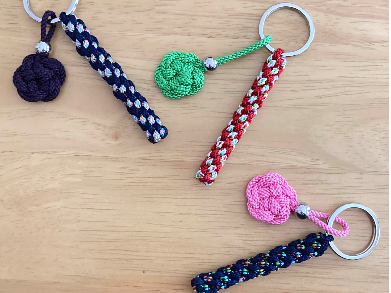 色彩豊かな津久井の組紐を2種類使ってオリジナルのキーホルダーを作ります。
