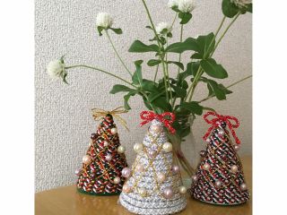 色彩豊かな津久井紐を使って、手のひらサイズのクリスマスツリーを作ります