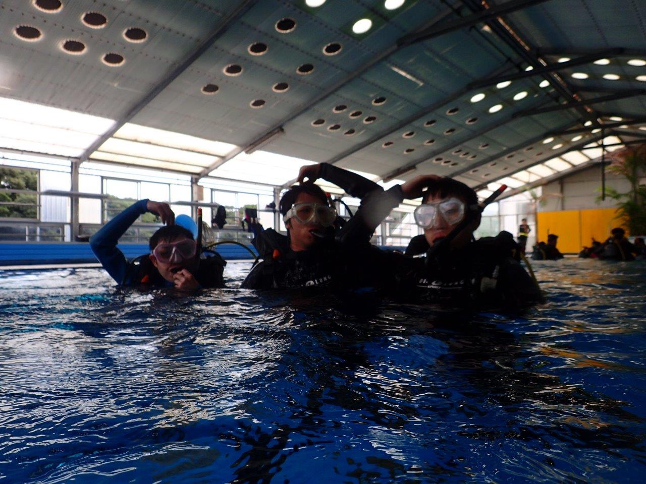 海が見える浅くて穏やかなプールでスキューバの体験ができます