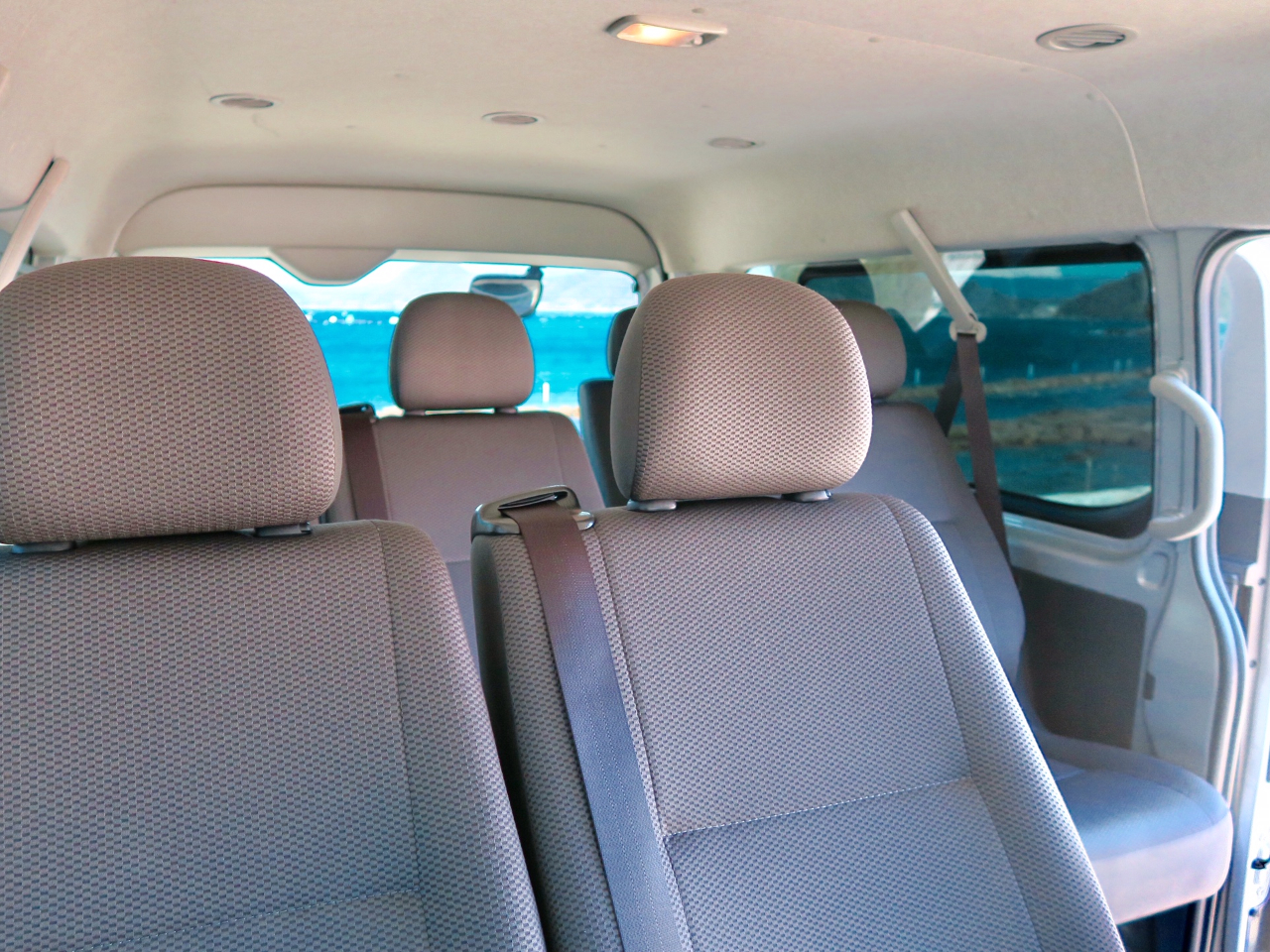 移動はハイエースワゴンで楽々!全席UVカット