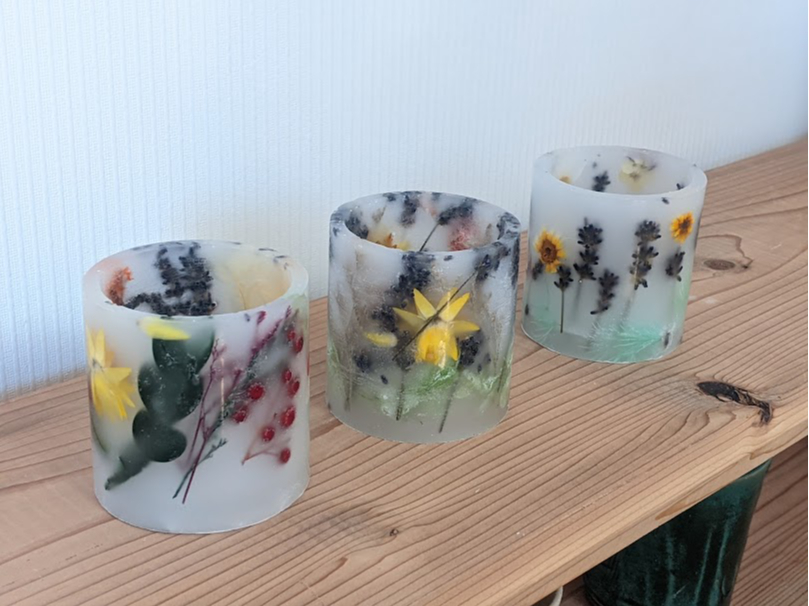 【キャンドル作り体験】お花を閉じ込めた繰り返し楽しめるランタン型のキャンドル作り☆北海道・帯広でもの作り体験☆自分へのご褒美に♪