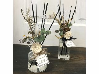お好みのドライフラワーやプリザーブドフラワーを束ねてリードと挿せばボタニカルリードディフューザーの完成です。