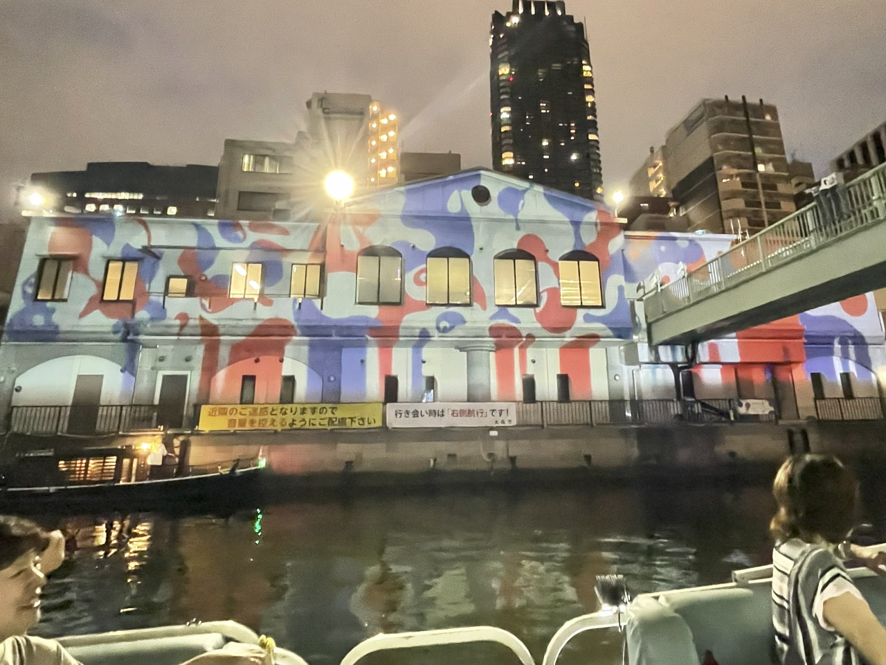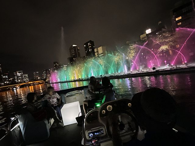 東横堀川を覆うこの演出は、まさに圧巻!水辺で体感することができる、壮大で美しいプロジェクションマッピングを船上から堪能できます。