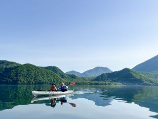 世界遺産日光にある中禅寺湖を静かな朝の時間帯に、緑の山と青い湖の絶景に囲まれながらカヌーで巡るプランです。