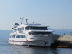フェリーは2種類あり往路で違う種類に乗りました。島はレモンが有名なのか、黄色いポスト・ベンチなど写真スポットが!桜も海も綺麗でした。