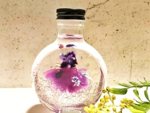 ハーバリウムに和紙で着物風の装飾をする、新しいクラフト「着物ドールリウム」の製作体験です。