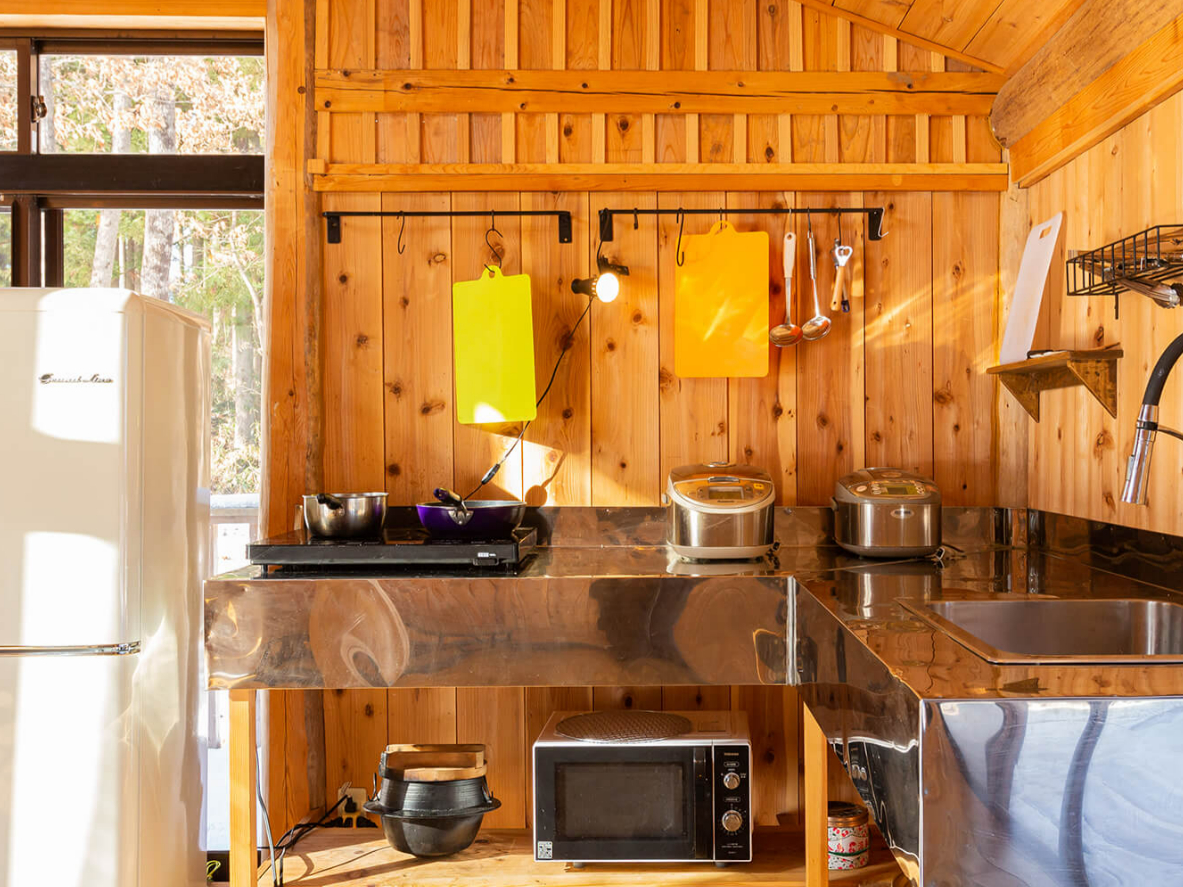 山小屋2棟・トレーラーハウス(エアストリーム)の3施設があります。